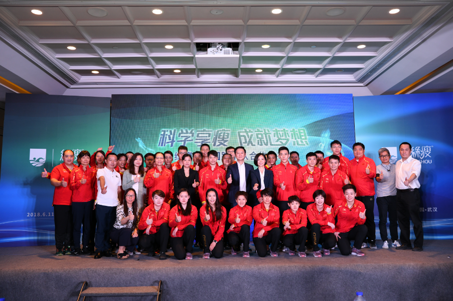 中國(guó)跳水隊(duì)與綠瘦高層合影,綠瘦攜手中國(guó)跳水隊(duì) 科學(xué)助力健康中國(guó)夢(mèng)