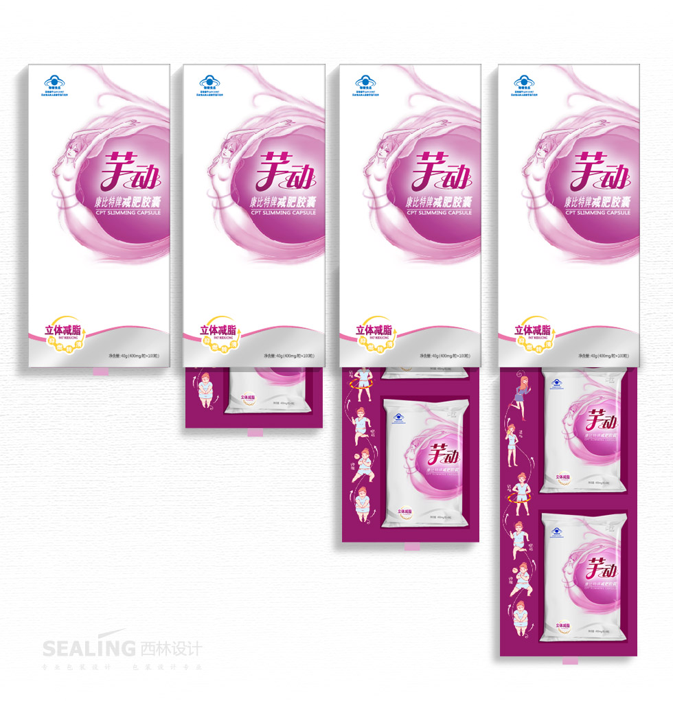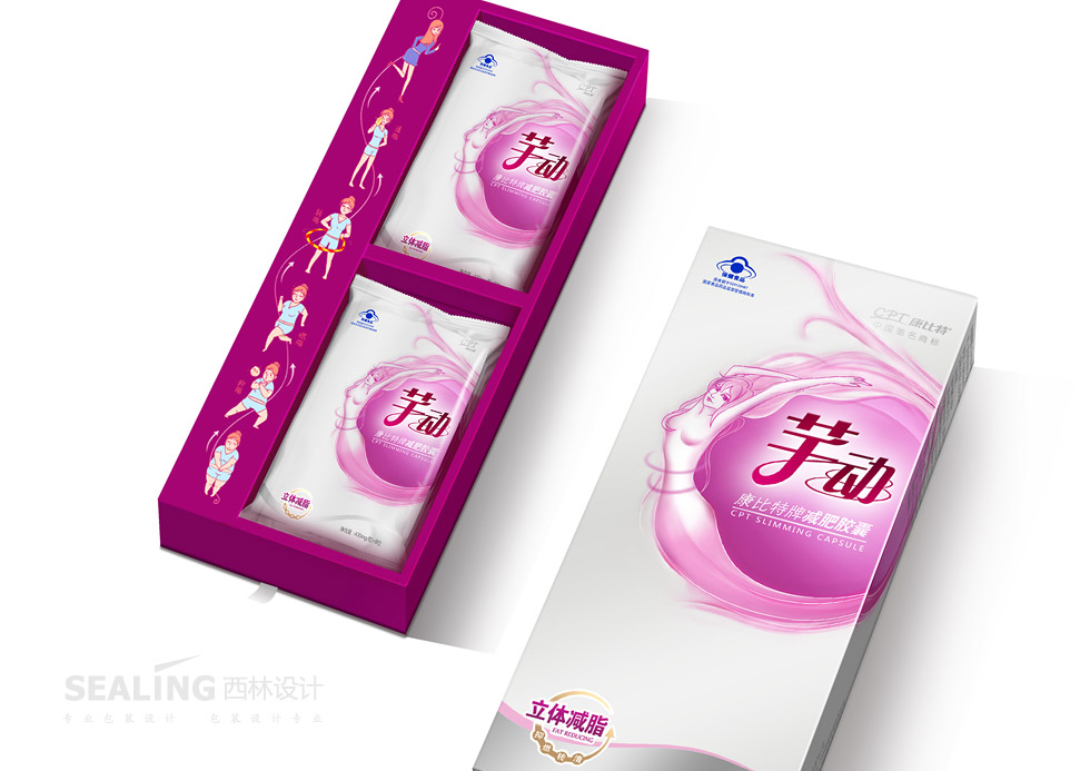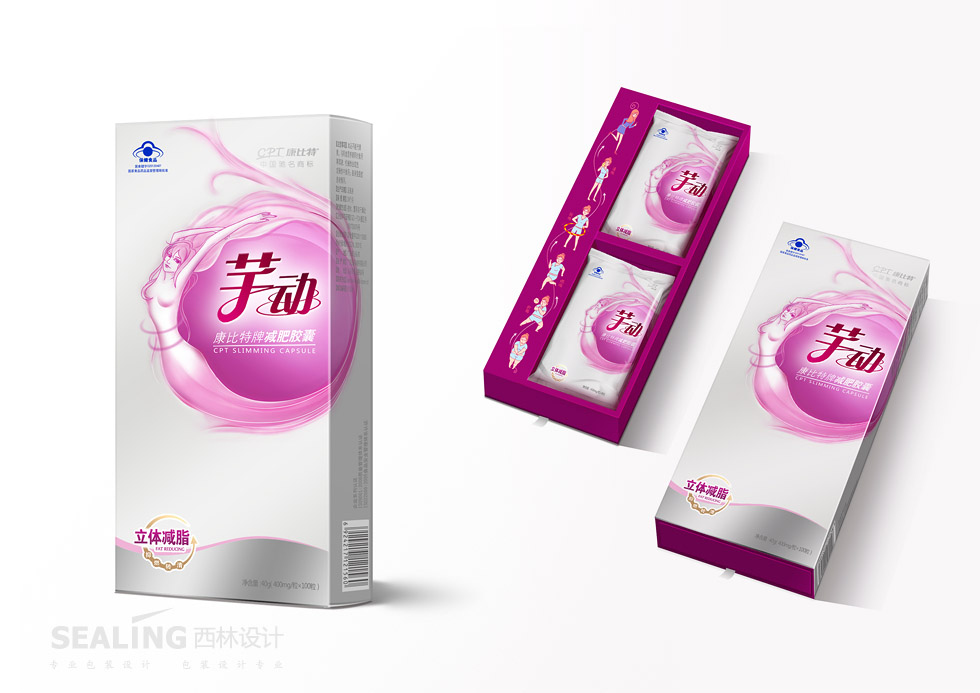 項目背景:康比特芊動產(chǎn)品的研發(fā)是直面當前“減肥10大因擾”的,在全國首創(chuàng)360度“抑-燃-轉(zhuǎn)-清”全方位立體減脂概念。要求西林設計為產(chǎn)品量身創(chuàng)作產(chǎn)品包裝,力求高檔、時尚,適度體現(xiàn)減肥功效。