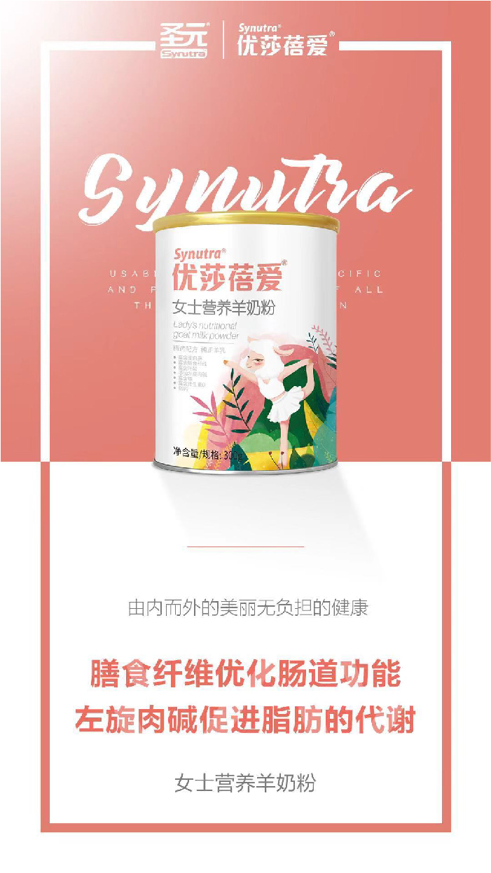 優(yōu)莎蓓愛(ài)是圣元旗下高端羊奶粉品牌,致力于為不同人群提供來(lái)自羊乳的優(yōu)質(zhì)營(yíng)養(yǎng)和多方位的健康呵護(hù),享受“樂(lè)”“養(yǎng)”人生。幾千年來(lái),羊乳一直是中國(guó)古代貴族的滋補(bǔ)佳品。研究發(fā)現(xiàn),羊乳有獨(dú)特的蛋白質(zhì)、脂肪結(jié)構(gòu),易于消化吸收,而且含有多種有益物質(zhì),使得羊乳具有非常高的營(yíng)養(yǎng)價(jià)值,是適合中國(guó)人的營(yíng)養(yǎng)食品。
