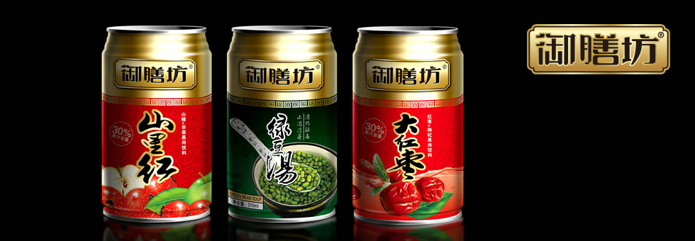 項(xiàng)目背景:御膳坊的系列健康飲品分為綠豆湯、山里紅、大紅棗三款,都是谷物和水果中的滋補(bǔ)佳品。在包裝設(shè)計(jì)中,我們運(yùn)用原料天然誘人的形態(tài)和色彩來(lái)區(qū)分系列產(chǎn)品,并在罐頂采用金色背景裝飾和中式古典紋飾來(lái)凸顯高品味的產(chǎn)品特質(zhì)。