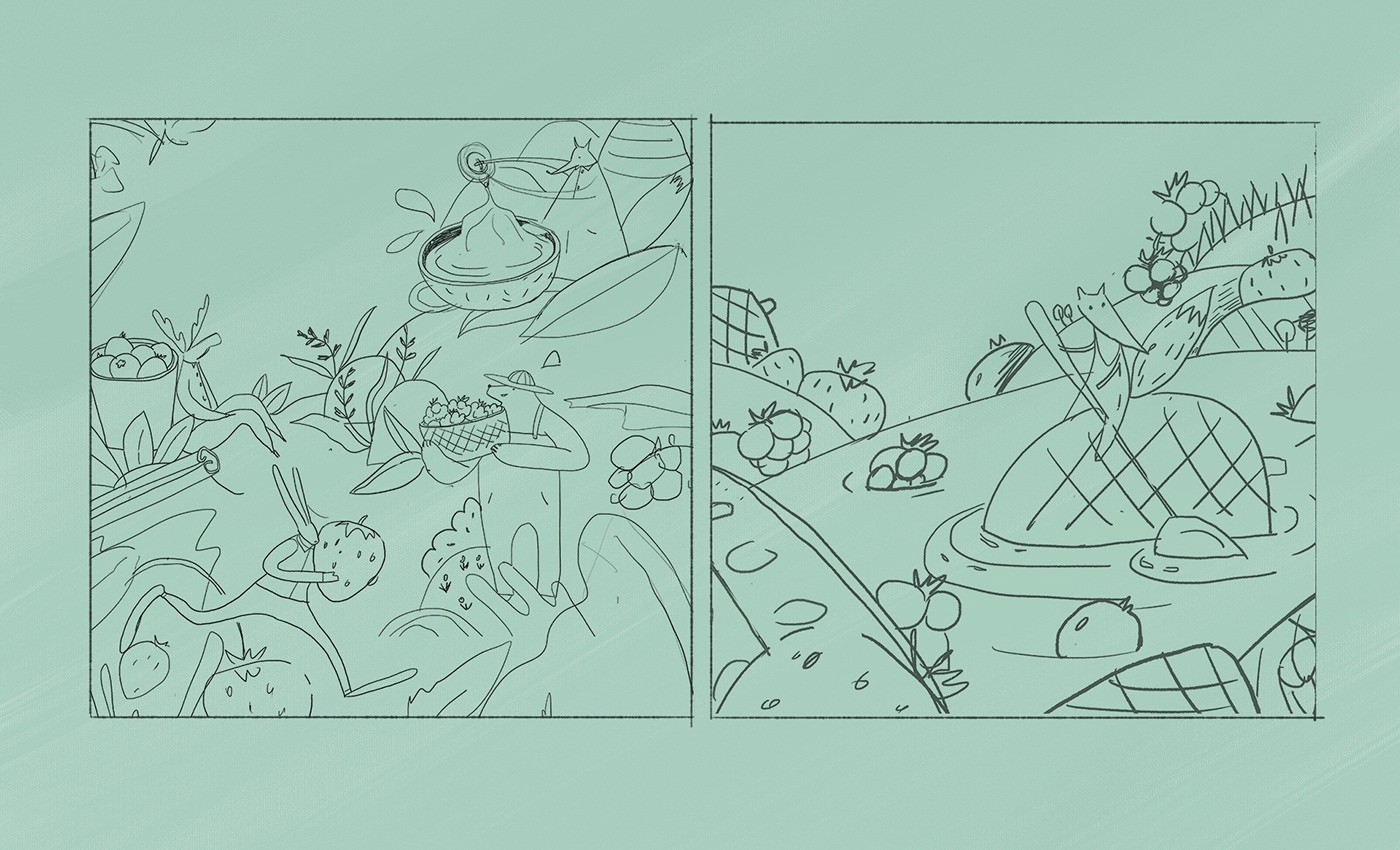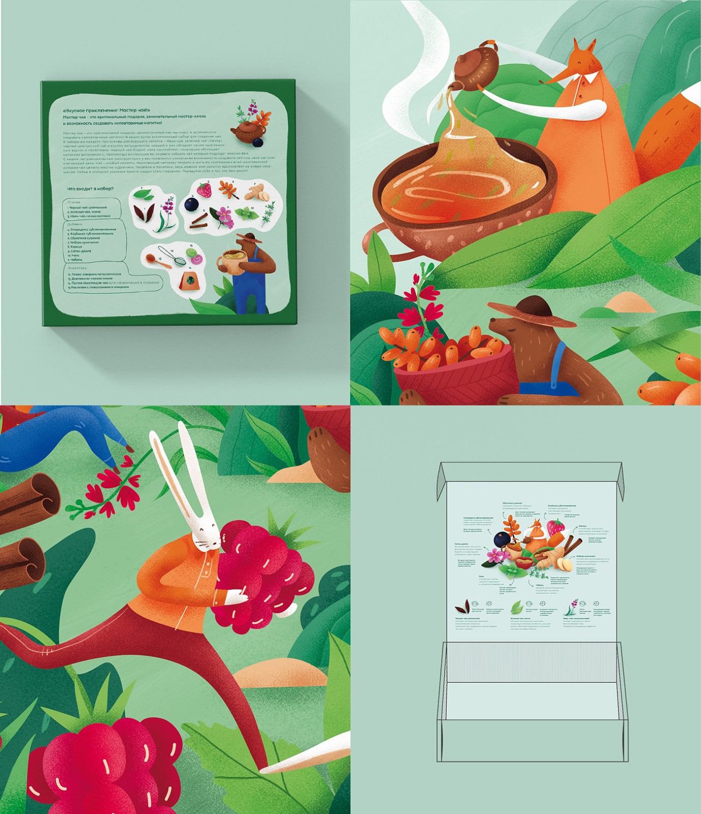 這個(gè)概念的想法是描繪巧克力的制作歷史和茶葉原料的收集歷史。這套是一個(gè)禮物,所以我想讓它盡可能的明亮有趣,因?yàn)橹饕馁I(mǎi)家是父母。