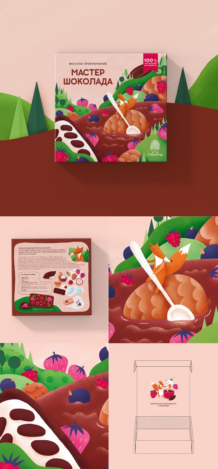 生態(tài)工廠“西伯利亞松”,俄羅斯最大的雪松堅(jiān)果糖果生產(chǎn)商。該公司推出了一系列用于制作巧克力和茶的禮品套裝。這條線的名字是“美味的冒險(xiǎn)”。這一套的名字是:“茶的主人”和“巧克力的主人”。設(shè)計(jì)應(yīng)該是同一風(fēng)格。使用風(fēng)格化的動(dòng)物,但它應(yīng)該看起來(lái)時(shí)尚有趣。