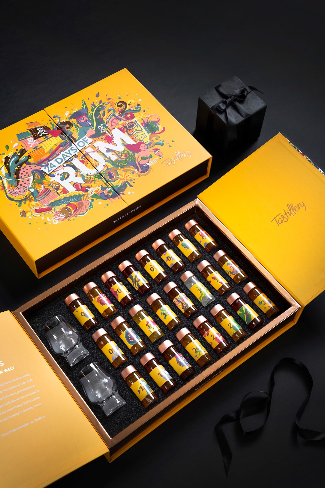 標(biāo)簽:收藏酒包裝設(shè)計欣賞 插圖 有很多元素代表每種酒飲的種類 每個盒子里有24個很棒的小酒樣本 收藏酒 試喝酒禮盒包裝設(shè)計 品牌產(chǎn)品包裝設(shè)計公司