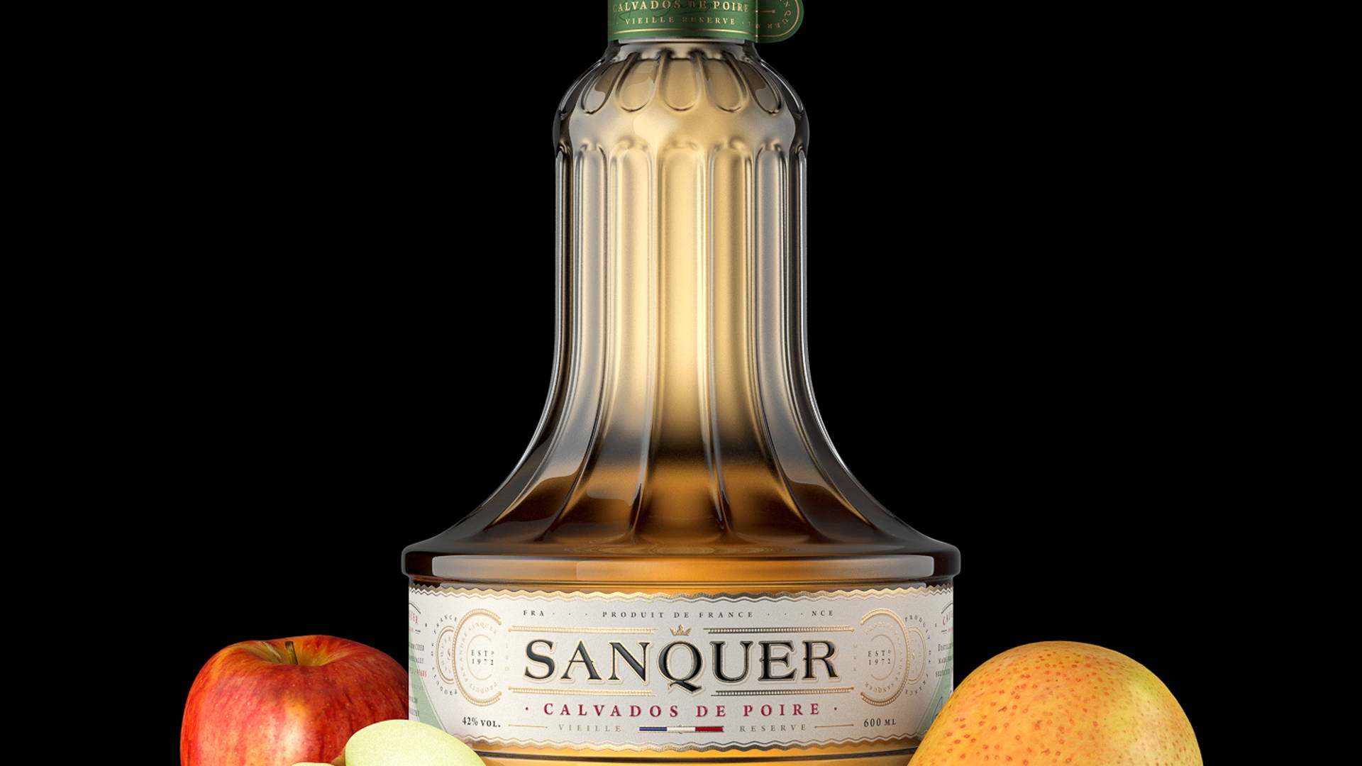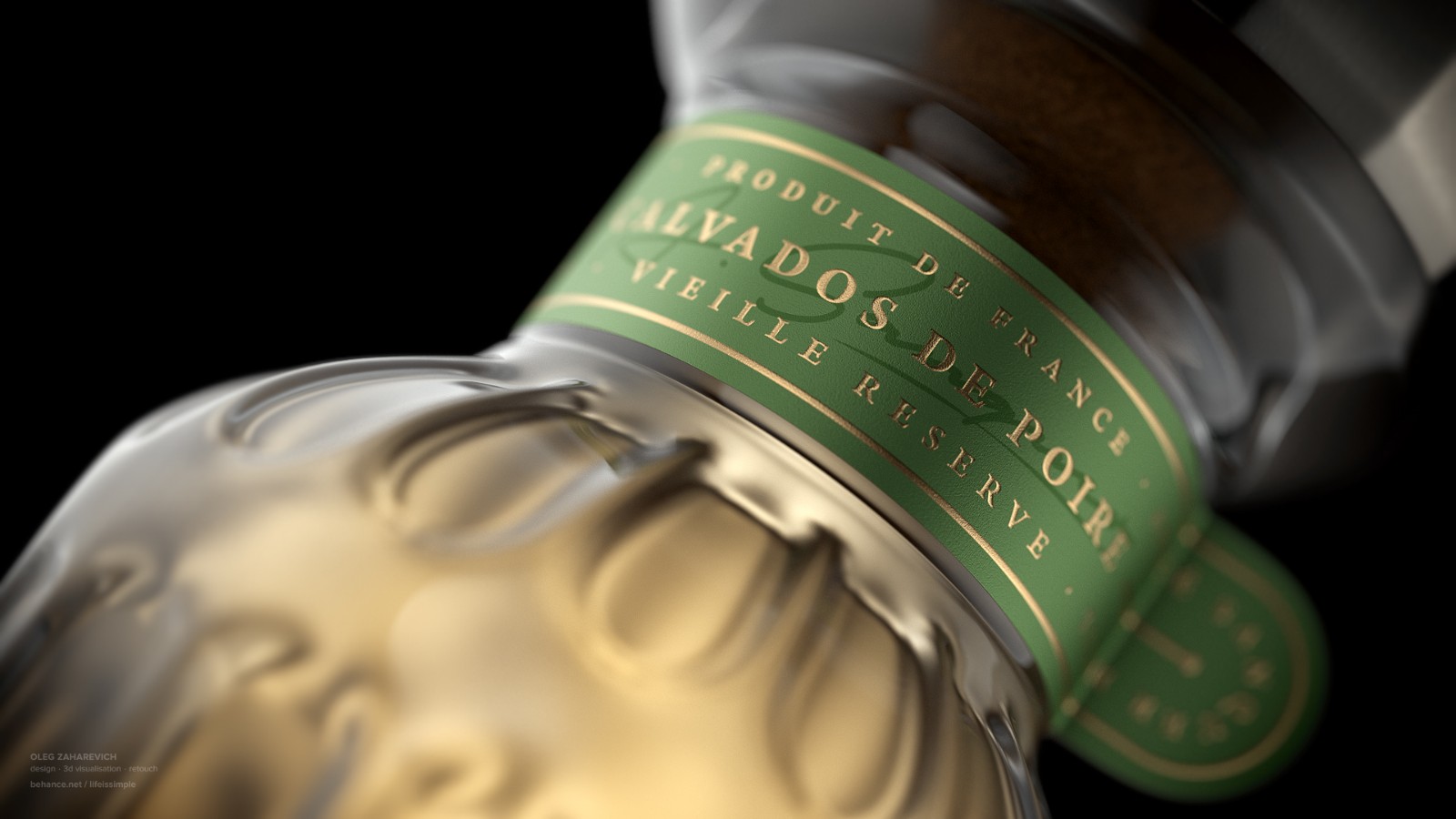 卡爾瓦多斯酒是一種具有三個(gè)主要產(chǎn)區(qū)的烈酒,其中一個(gè)主要是通過梨的蒸餾制成的。在研究這種法國精神時(shí),Oleg Zaharevich創(chuàng)建了一個(gè)虛構(gòu)的calvados品牌SANQUER。他使用CGI開發(fā)了品牌標(biāo)識(shí),在瓶子的形狀和標(biāo)簽上放置了特定的細(xì)節(jié)。為了反映烈酒的主要成分,他制作了一個(gè)梨形的瓶子,它的脖子和圓潤的身體細(xì)長。他使用金箔數(shù)字化設(shè)計(jì),將細(xì)線和圓圈組合在一起,優(yōu)雅地設(shè)計(jì)了標(biāo)簽。包括極簡主義的窄幅法國國旗標(biāo)志,以進(jìn)一步強(qiáng)調(diào)該虛構(gòu)品牌的歷史和文化。
